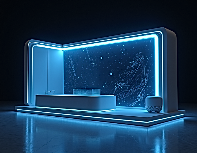 Bu yüksek teknolojiyi ve doğanın sıcaklığını aynı anda yansıtmak için; stand tasarımınızda ham masif ahşap dokularını, dikey peyzajları (canlı bitki duvarları) ve fütüristik LED ekranları bir araya getiriyoruz. Sulama sistemlerinizi veya tarım yazılımlarınızı ziyaretçiye yaşatmak için standın ana omurgasına entegre edilmiş devasa video wall (ekran) sistemleri kuruyor, "geleneksel tarımın gelecekle buluştuğu" vizyoner bir konsept yaratıyoruz.