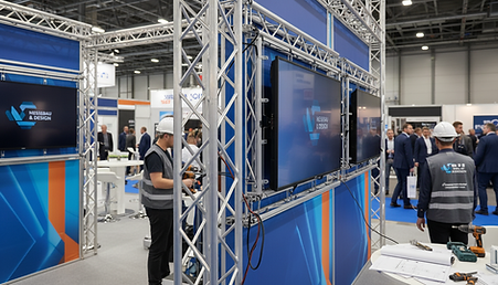 BayZ Tasarım'ın tecrübeli mühendislik ekibi, tonlarca ağırlıktaki bu ürünleri güvenle taşıyacak çelik konstrüksiyon destekli, statik onaylı güçlendirilmiş özel podyumlar inşa eder. Fuar alanına ağır tırlarla yapılacak giriş-çıkış (lojistik ve rigging) süreçlerinin gerektirdiği milimetrik hesaplamaları, tasarım aşamasında sizin adınıza biz planlıyoruz.